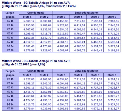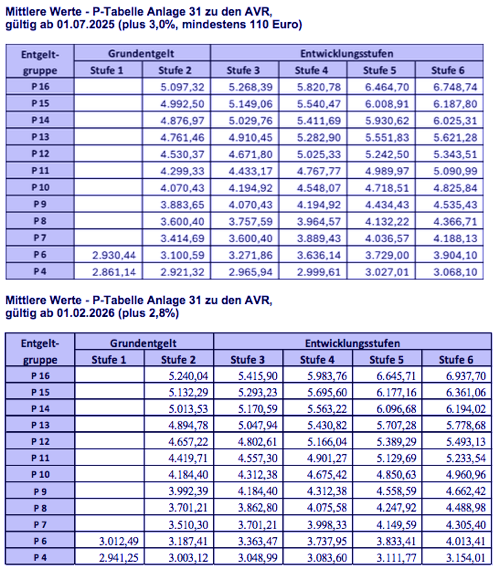 2Zum Monatsentgelt im Sinne dieser Vorschrift gehören das Tabellenentgelt gem. § 12 der Anlage 31 zu den AVR i.V.m Anhang A der Anlage 31 zu den AVR und weitere regelmäßige gewährte Zulagen.